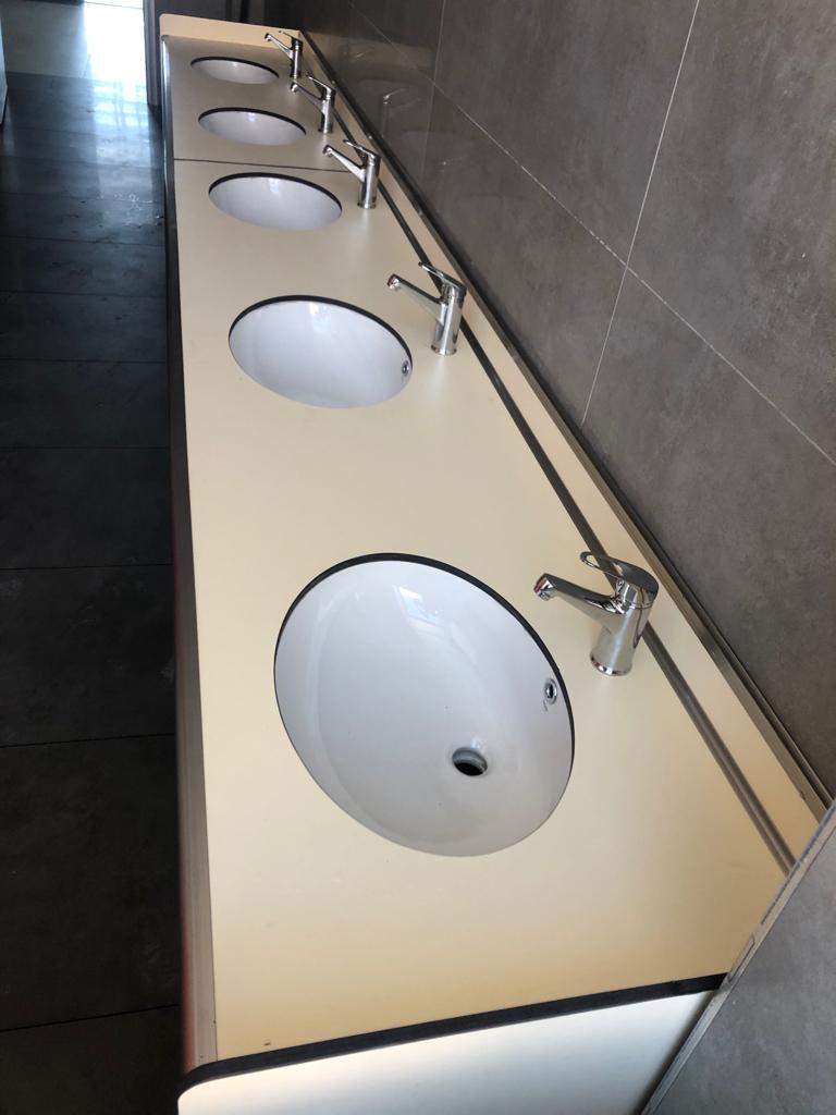 Tezgâh sistemlerimizde kompakt laminat ve akrilik malzeme kullanılmıştır. İnsan sağlığı için hiçbir tehdit içermeyecek şekilde tamamen hijyenik bir ortam sağlamak için üretilmiştir. Neme, aşınmaya, darbeye ve çizilmeye dayanıklıdır. Leke tutmamasının yanı sıra modern ve estetik görünümüyle öne çıkmaktadır.